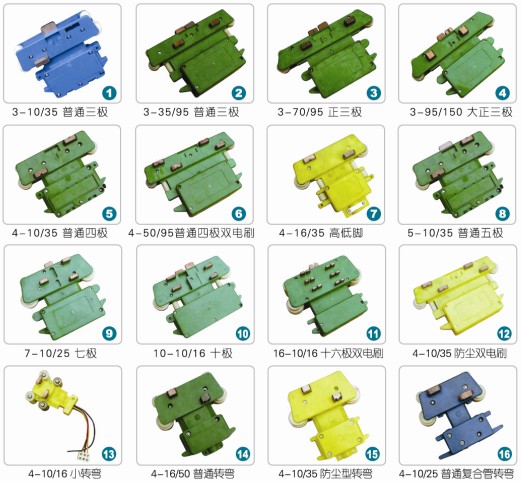 2、輸電銅排母線電流密度高、阻抗低、線路損失小。電刷具有良好的柔性和自潤滑性,集電器移動靈活、定向性好、接觸性好,有效地控制了接觸電弧和串弧現(xiàn)象。